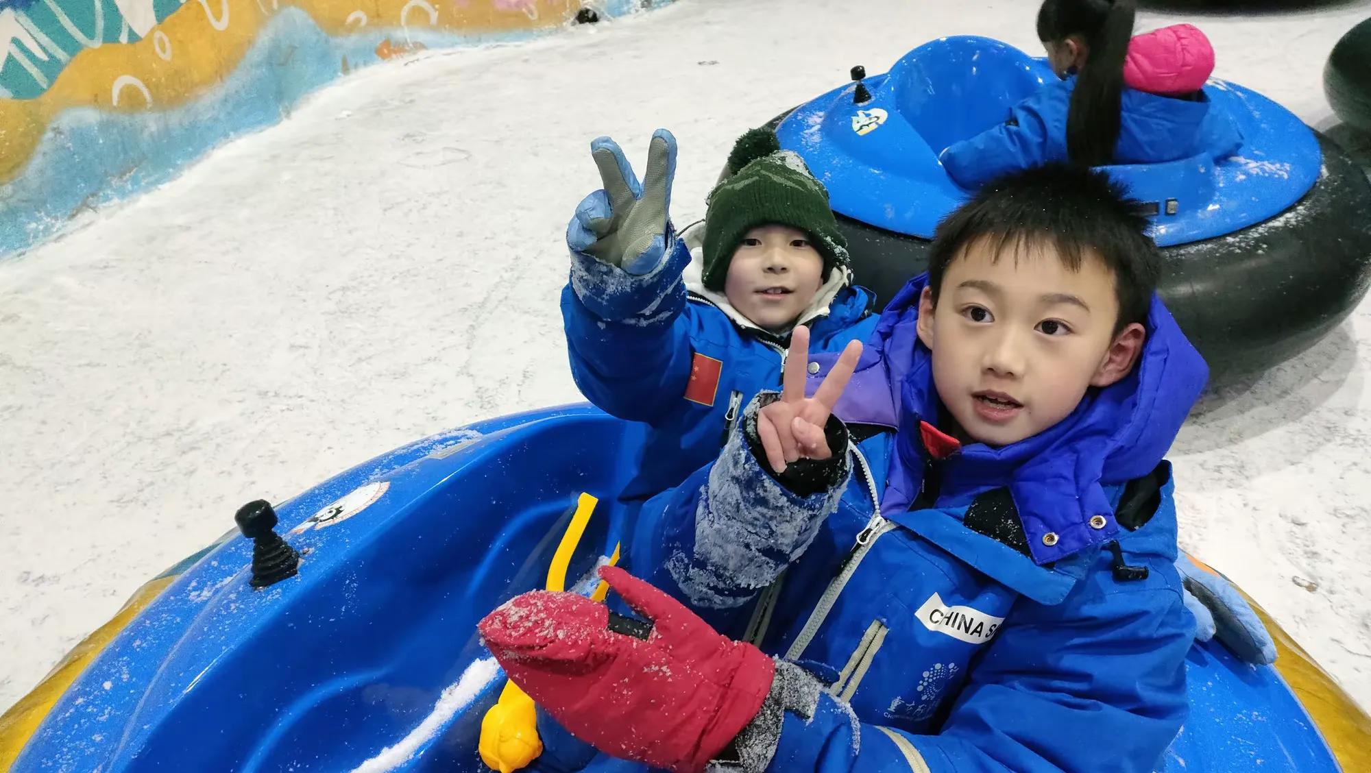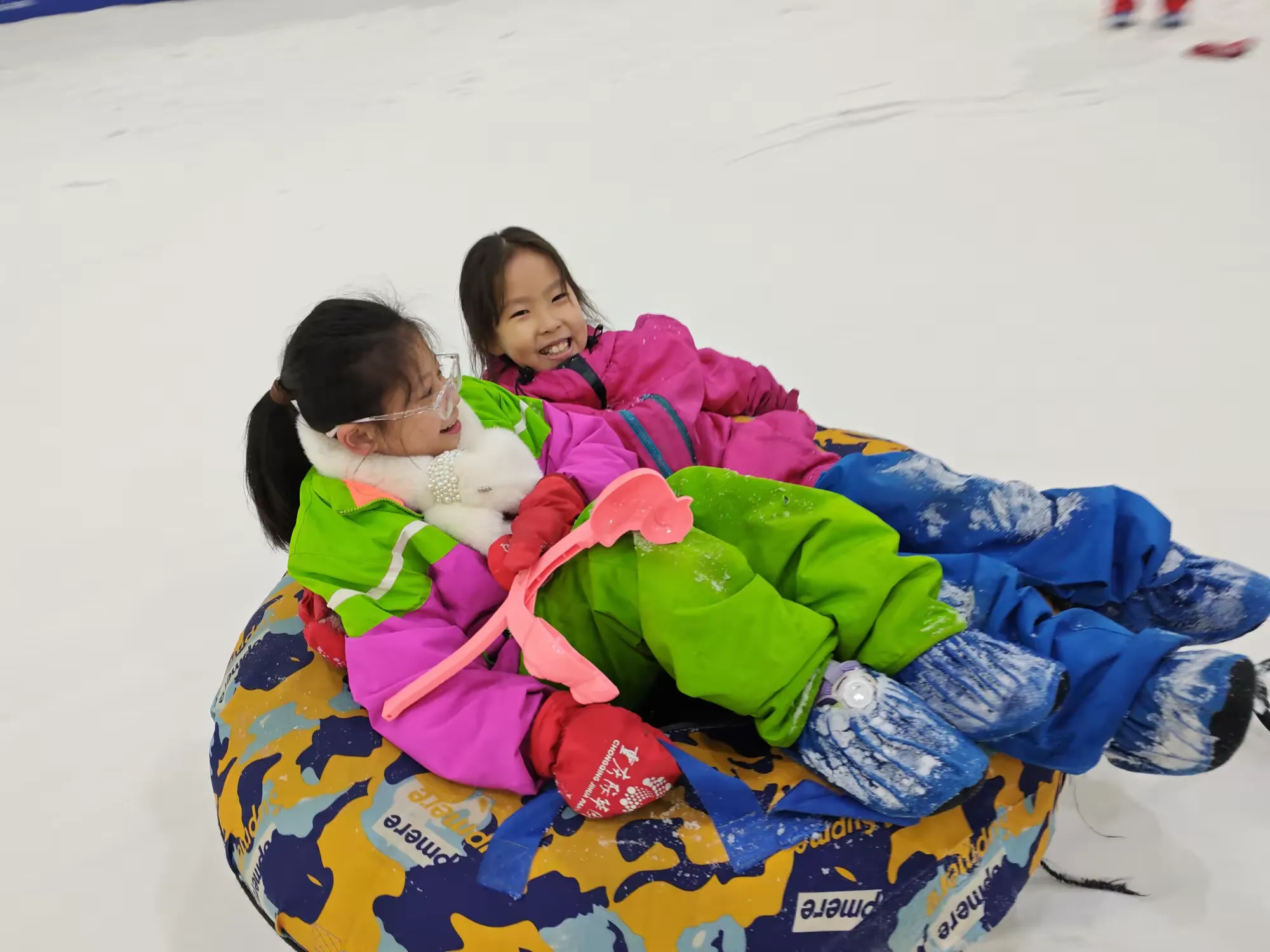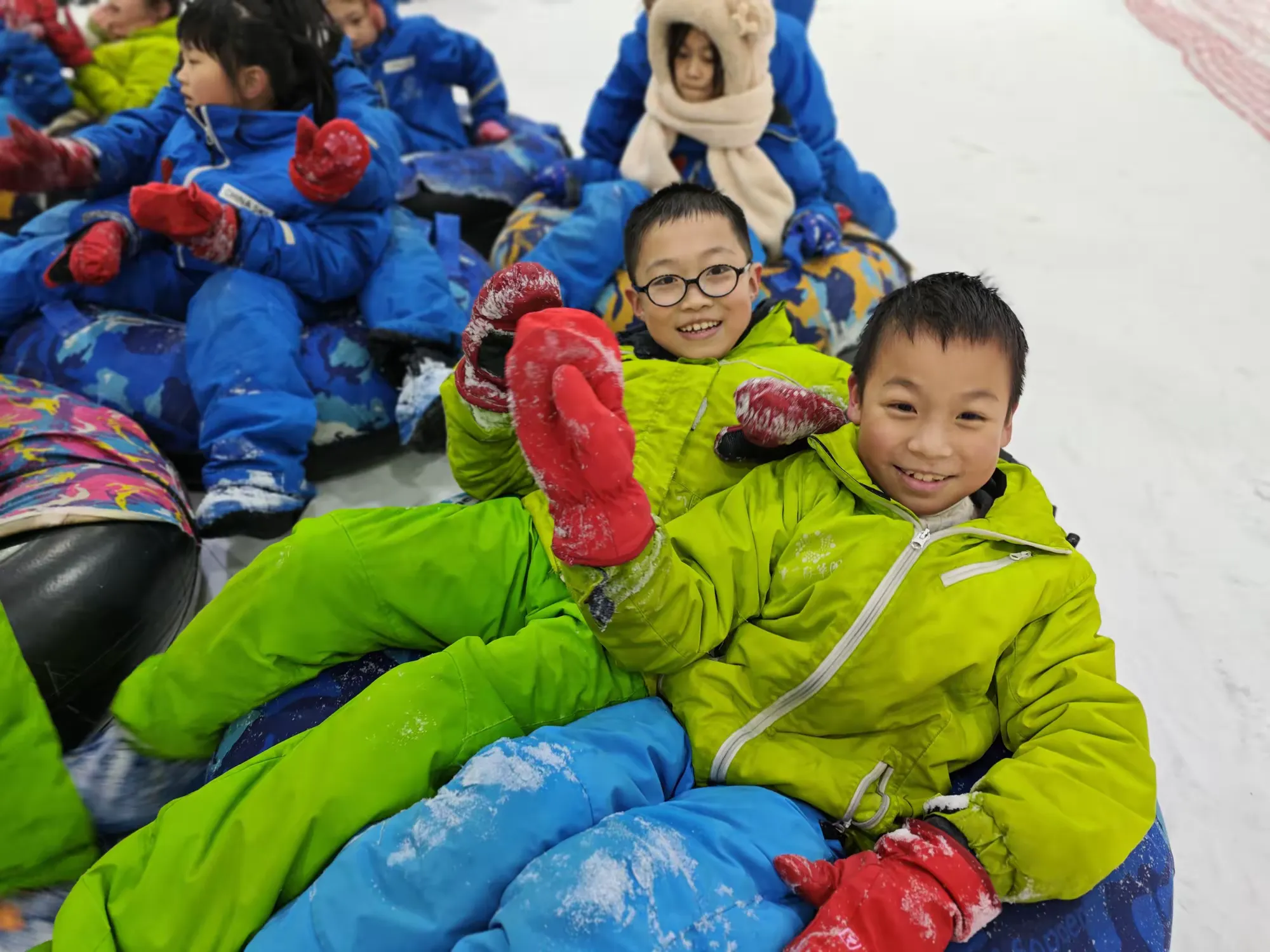 雪圈滑行可以让同学们充分释放天性,在速度与欢笑中走进最真实的自己。登上雪坡,俯瞰雪场,庞大的队伍成为雪场上靓丽的风景线。同学们浩浩荡荡地冲下雪坡,欢声笑语声在雪场上回响,紧密相连的不仅是雪圈,更有不断加深的友谊。