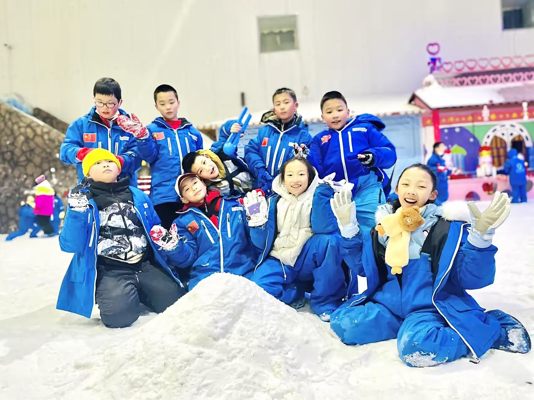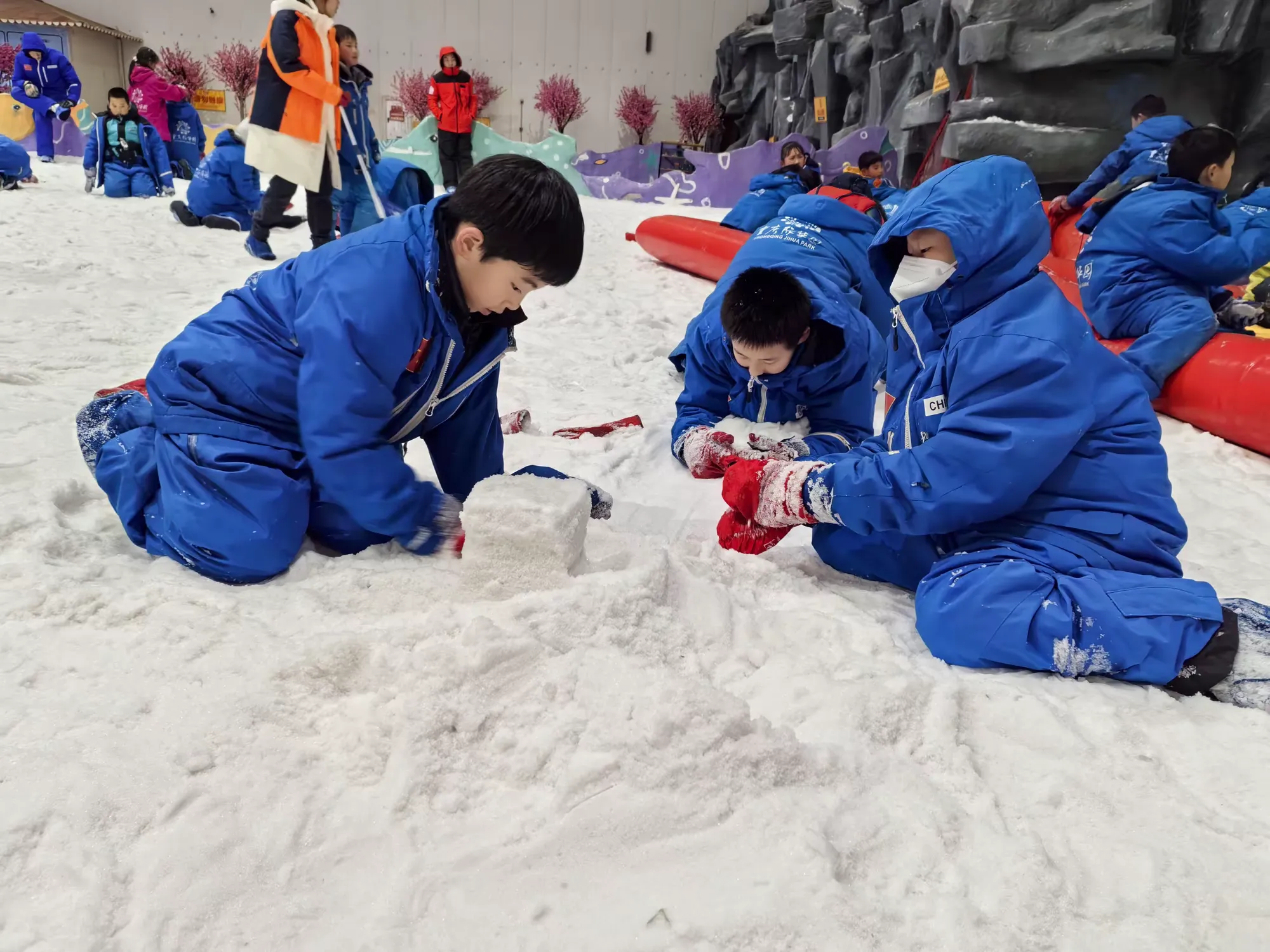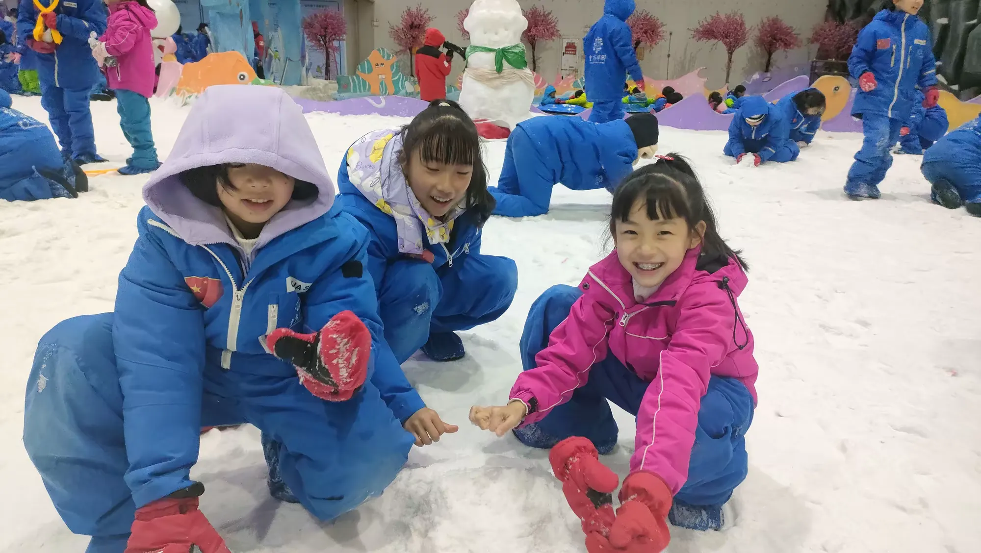 每个孩子心里大概都有一个“冰雪情结”,他们向往在雪堆中打滚、堆出憨态可掬的雪人、在冰雪的世界里肆意撒欢。走进室内滑雪场,同学们穿好厚厚的雪服,经过教练的仔细讲解后,准备实现玩雪自由!