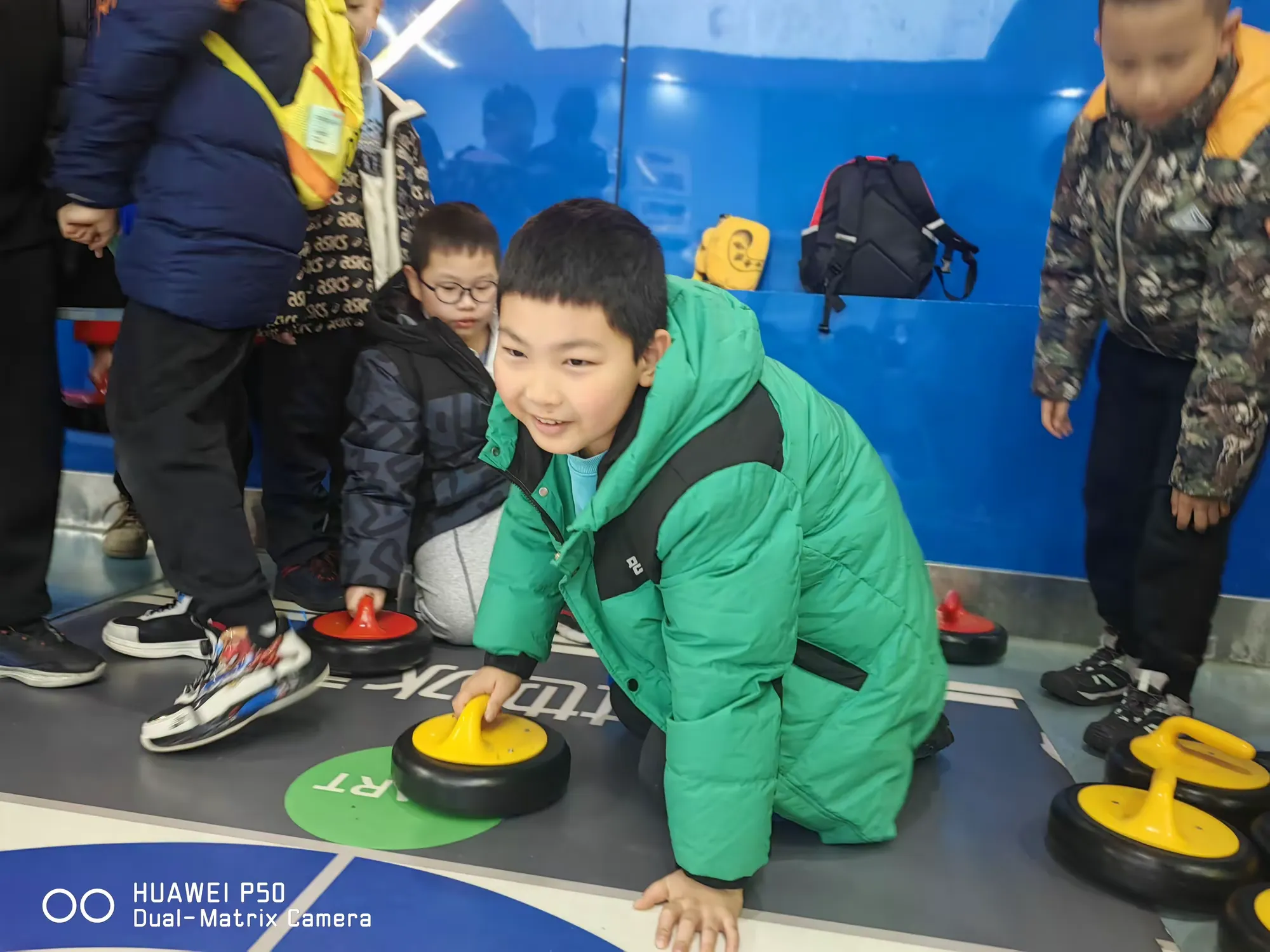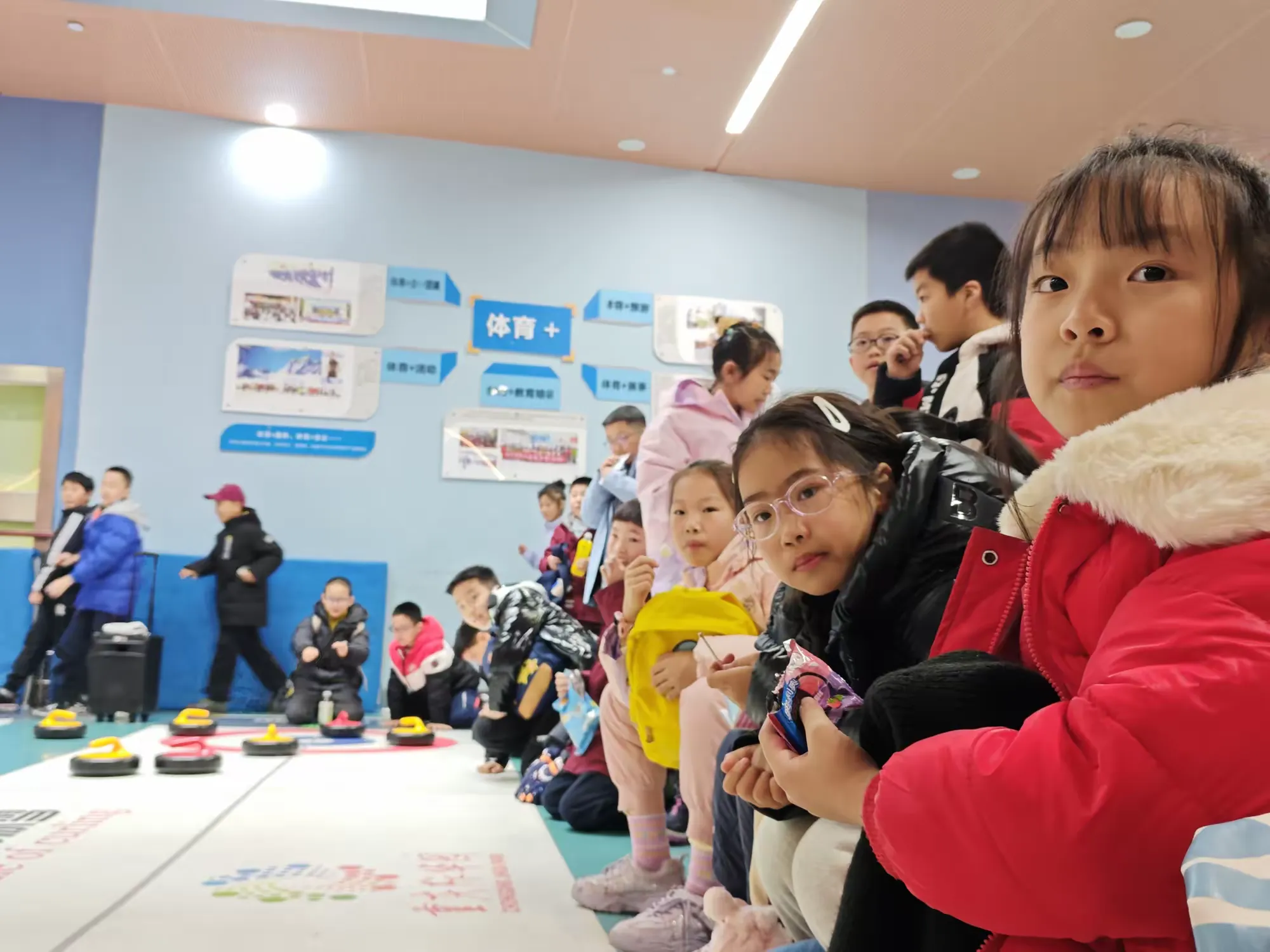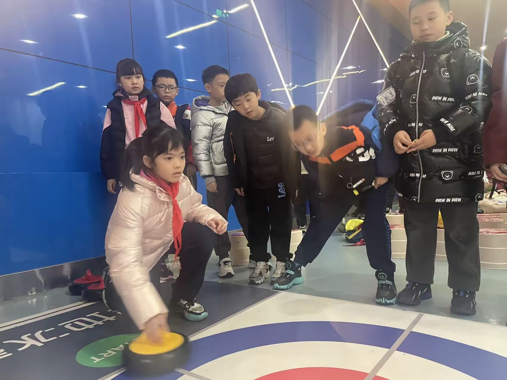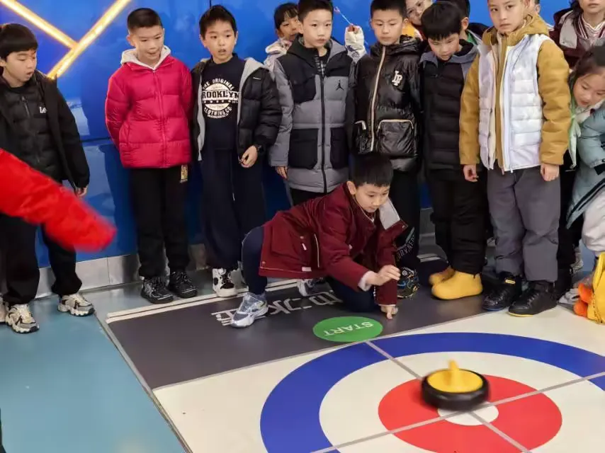 经过教练详尽的讲解和示范后,同学们迅速掌握了旱地冰壶的规则与基本操作,并亲自上手体验。在比拼过程中,同学们积极参与、热情高涨,在了解冰壶运动知识的同时,也传播了奥运精神。
