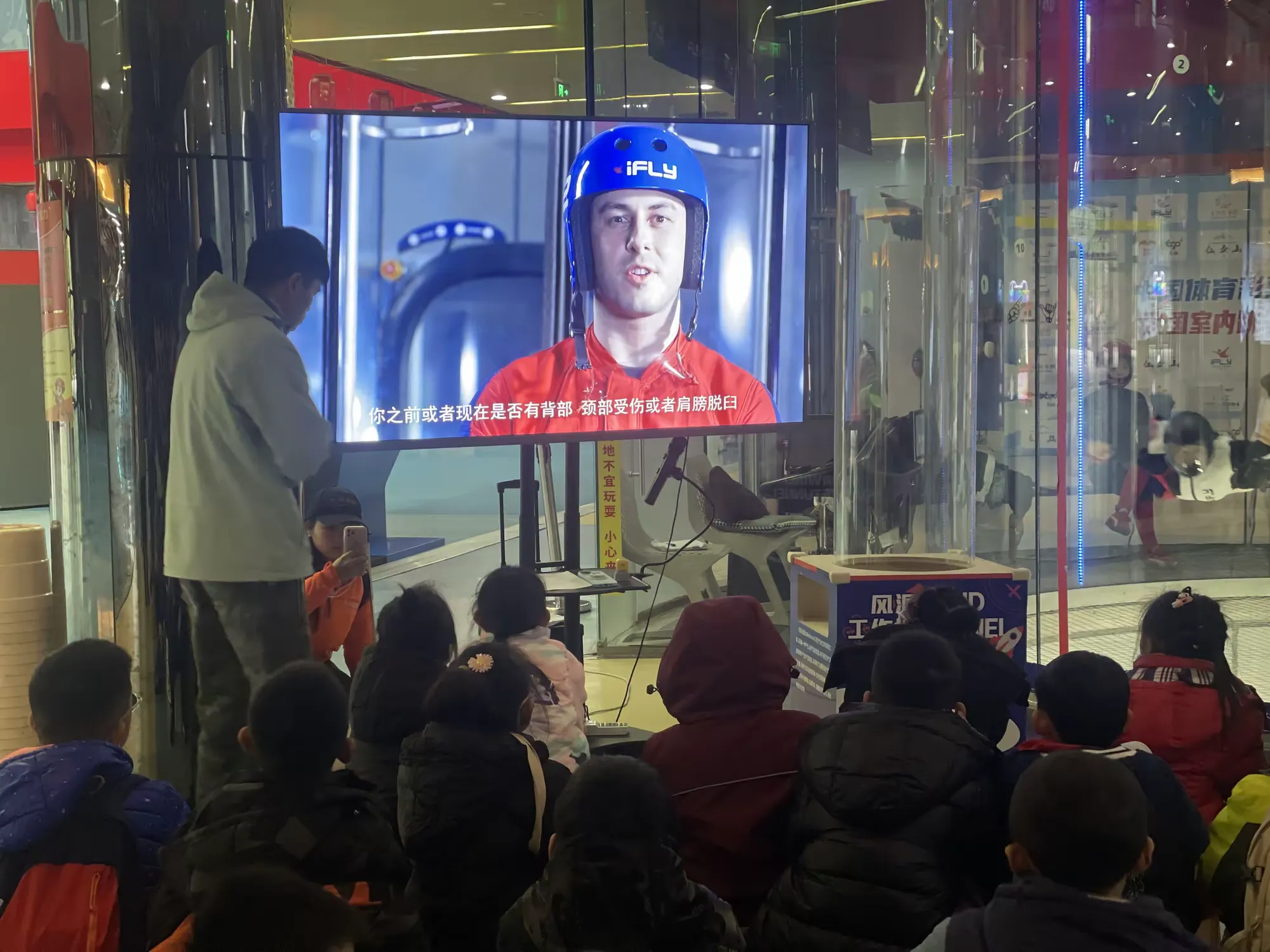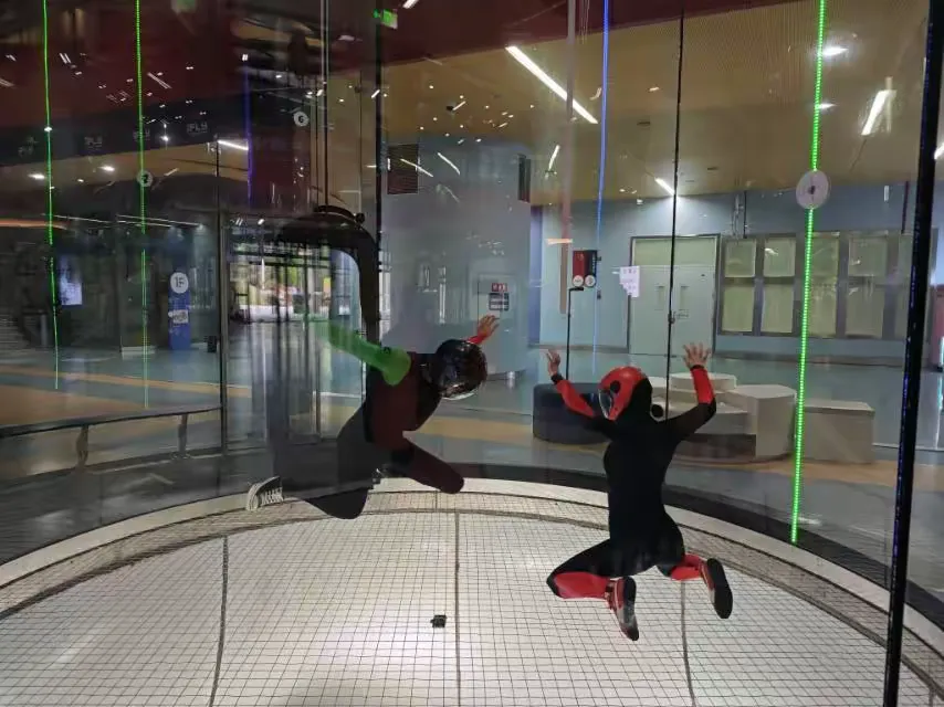 乐其研学老师向参与活动的同学们系统的、全方位的讲解中国跳伞的历史知识,并指导同学们亲身参与风洞体验、模拟飞行等项目。
