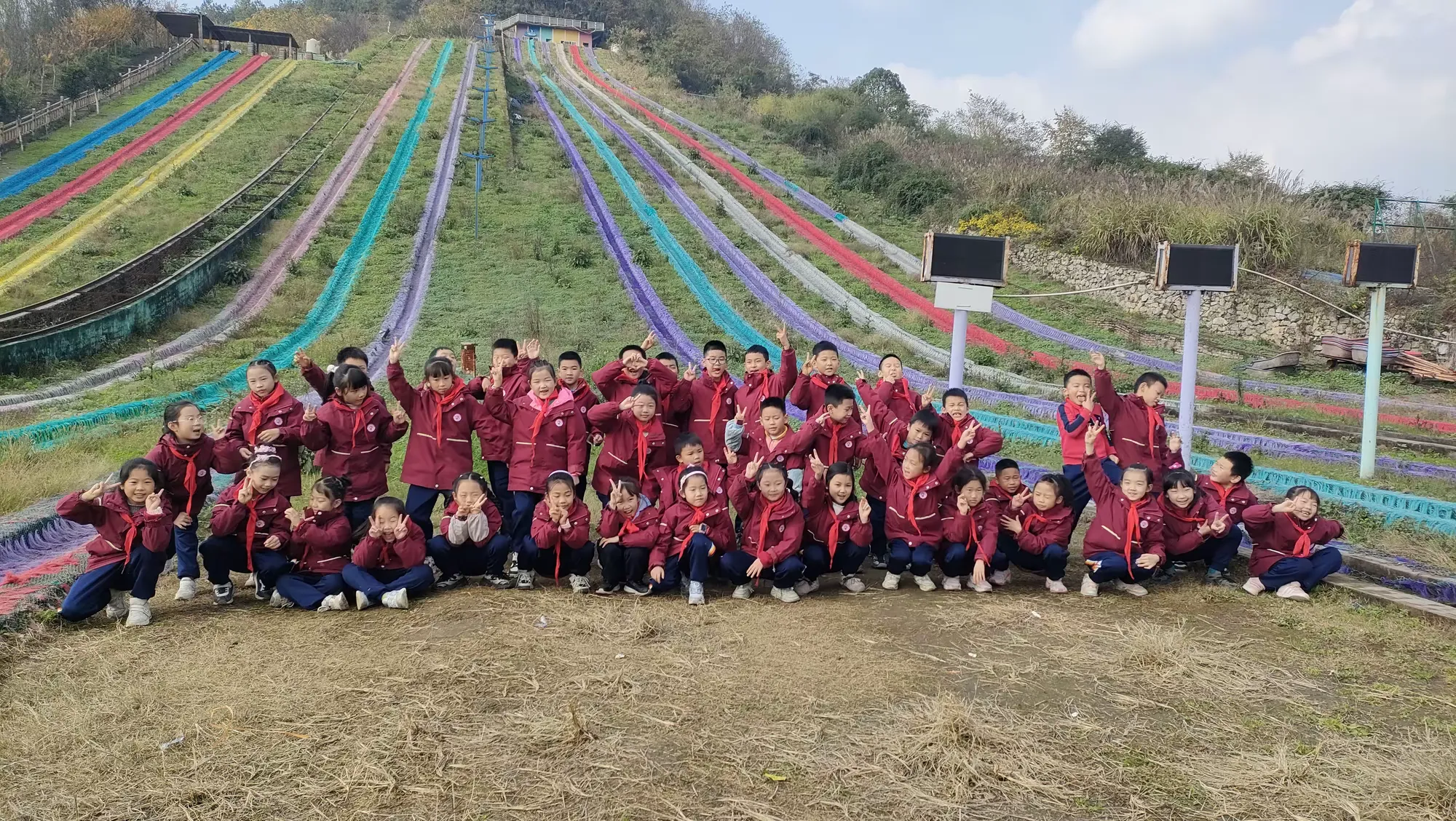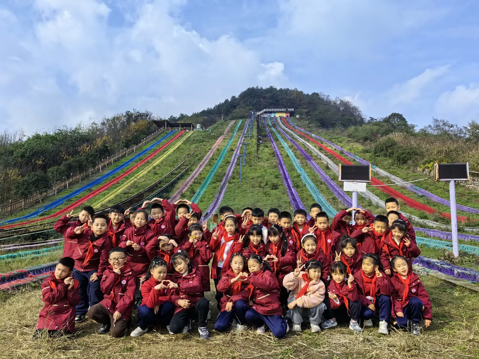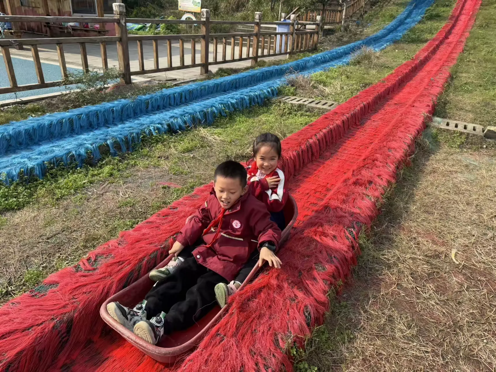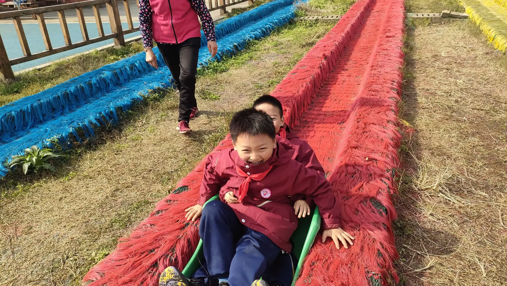 踏入七彩绚丽的彩虹滑道区域,同学们瞬间被欢快氛围笼罩。望着高耸滑道,惊叹声、欢呼声此起彼伏。同学们勇敢踏上滑道,飞驰而下的瞬间,疾风呼啸耳畔,心跳加速,或紧张或无畏,但勇敢跨出那一步,勇气与胆量在此刻蓬勃生长。当稳稳落地,战胜自我的成就感如暖阳沁心,熠熠生辉。