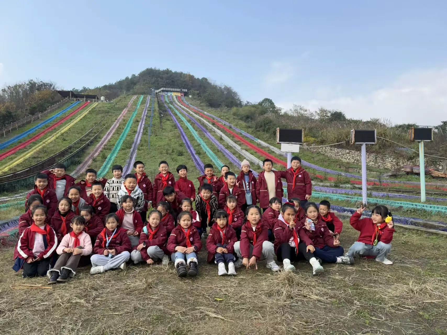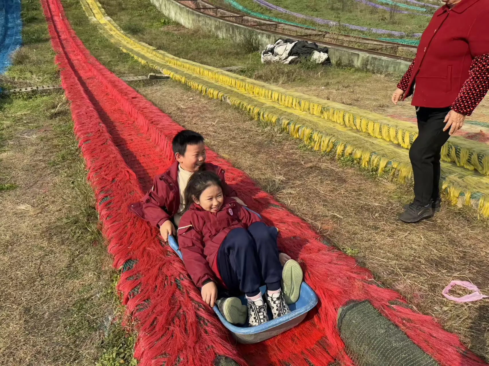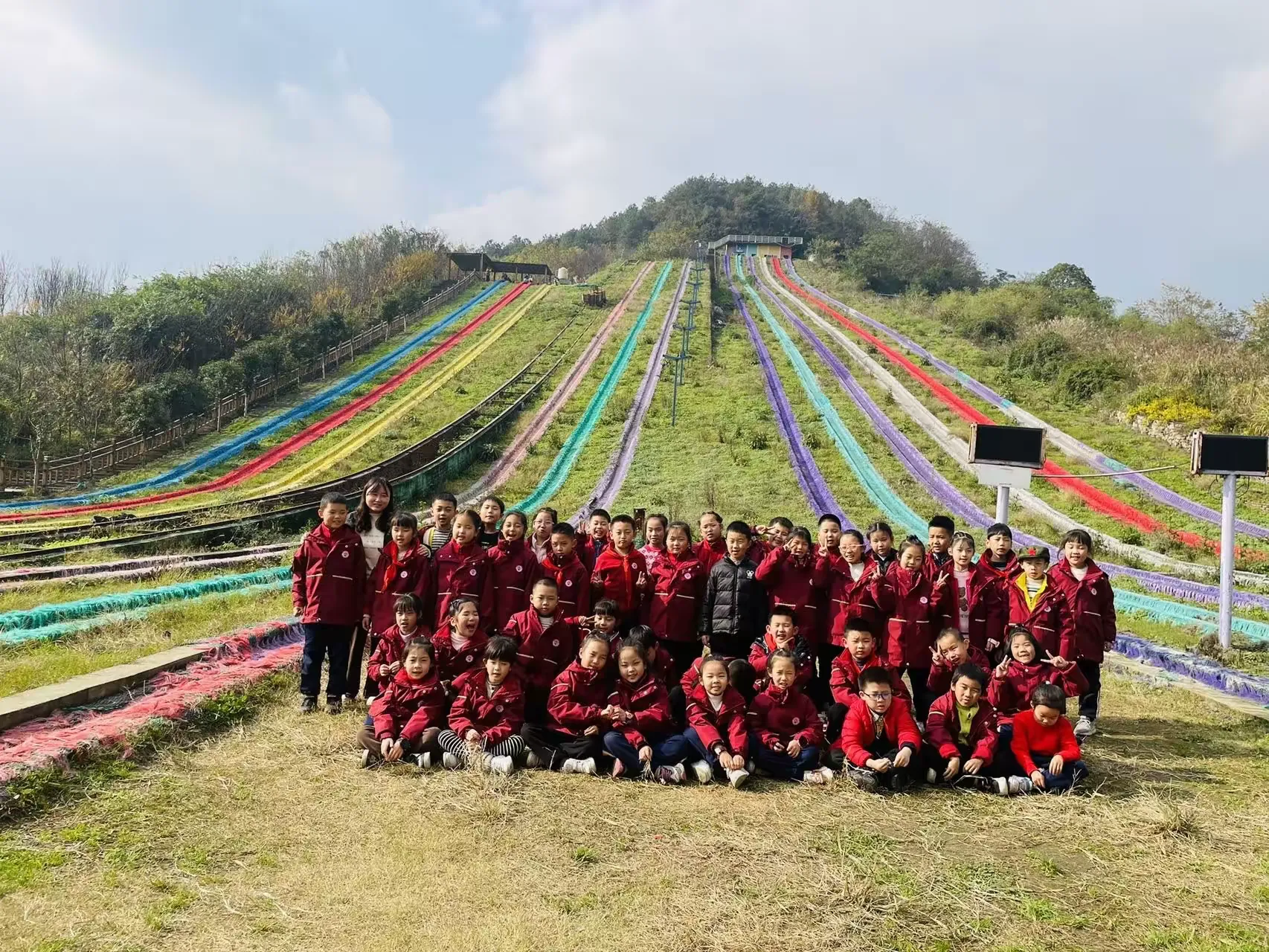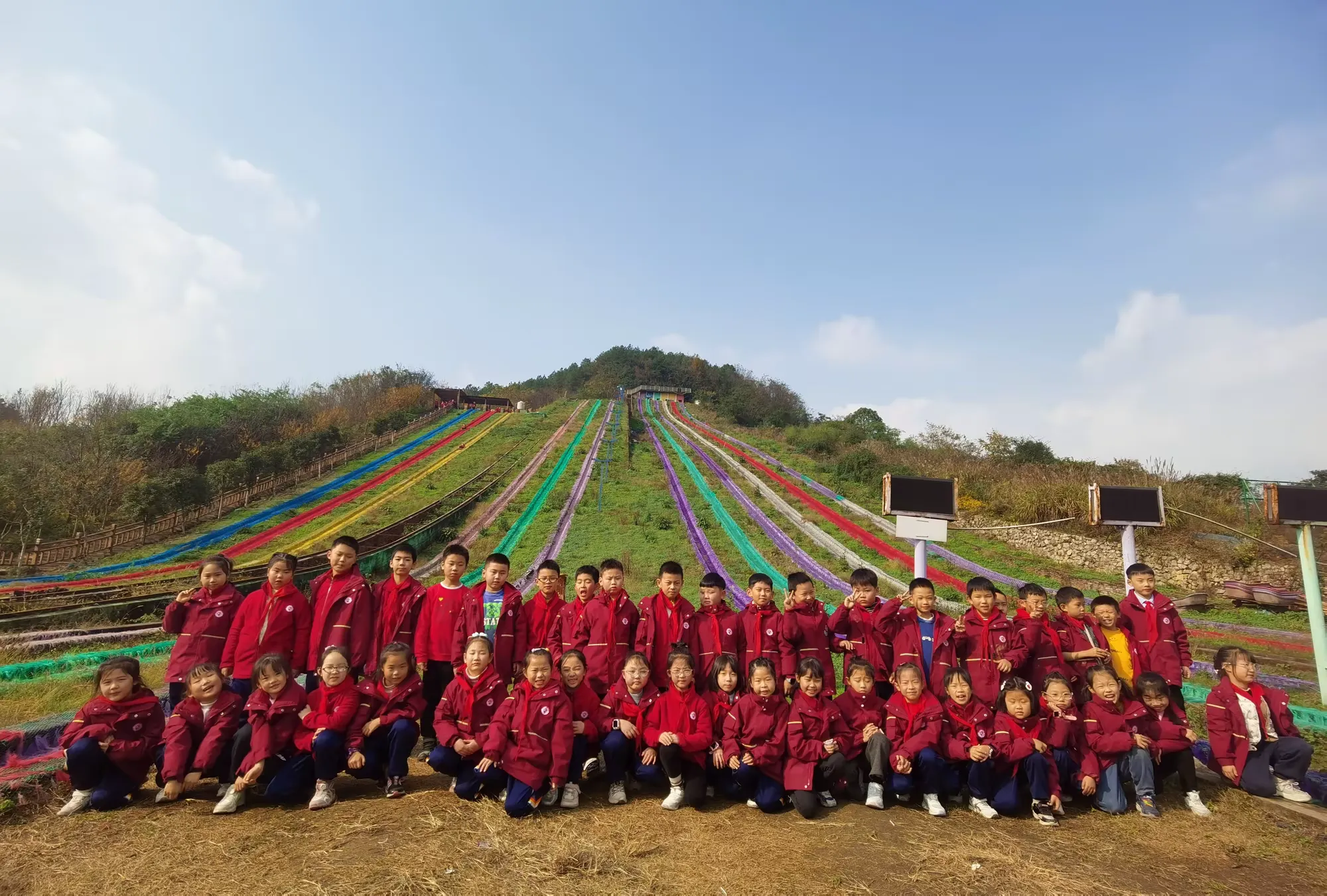 踏入七彩绚丽的彩虹滑道区域,同学们瞬间被欢快氛围笼罩。望着高耸滑道,惊叹声、欢呼声此起彼伏。同学们勇敢踏上滑道,飞驰而下的瞬间,疾风呼啸耳畔,心跳加速,或紧张或无畏,但勇敢跨出那一步,勇气与胆量在此刻蓬勃生长。当稳稳落地,战胜自我的成就感如暖阳沁心,熠熠生辉。