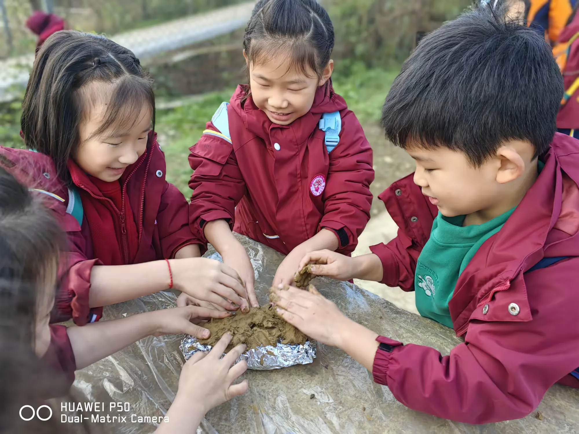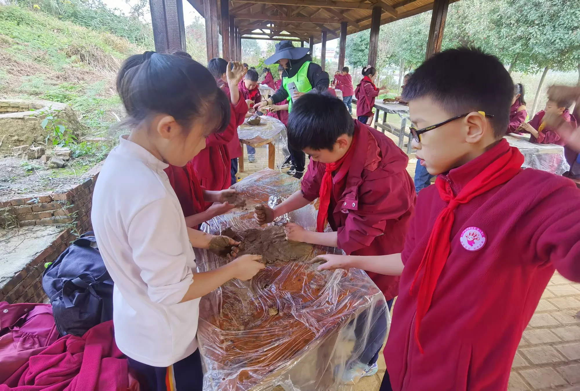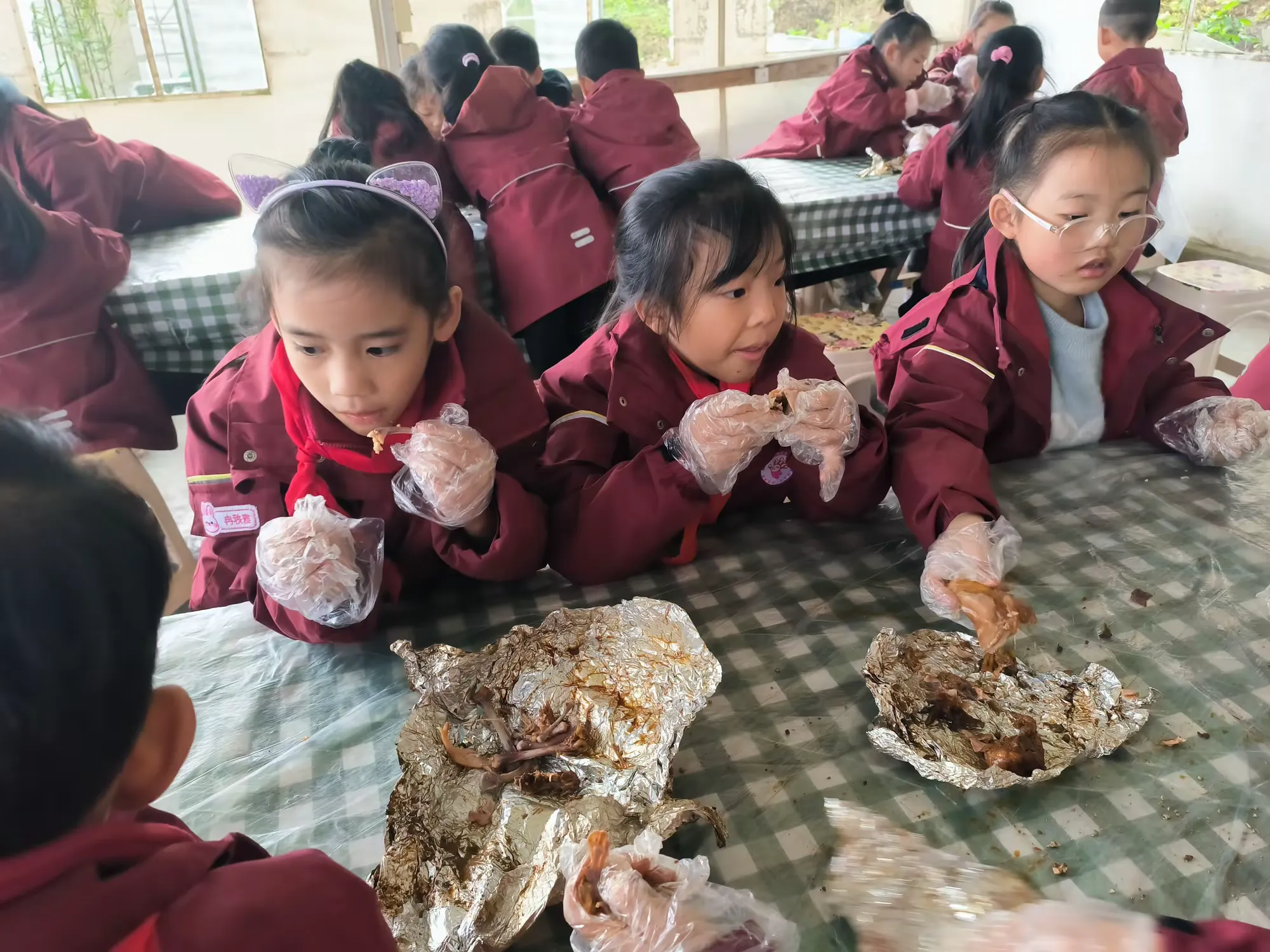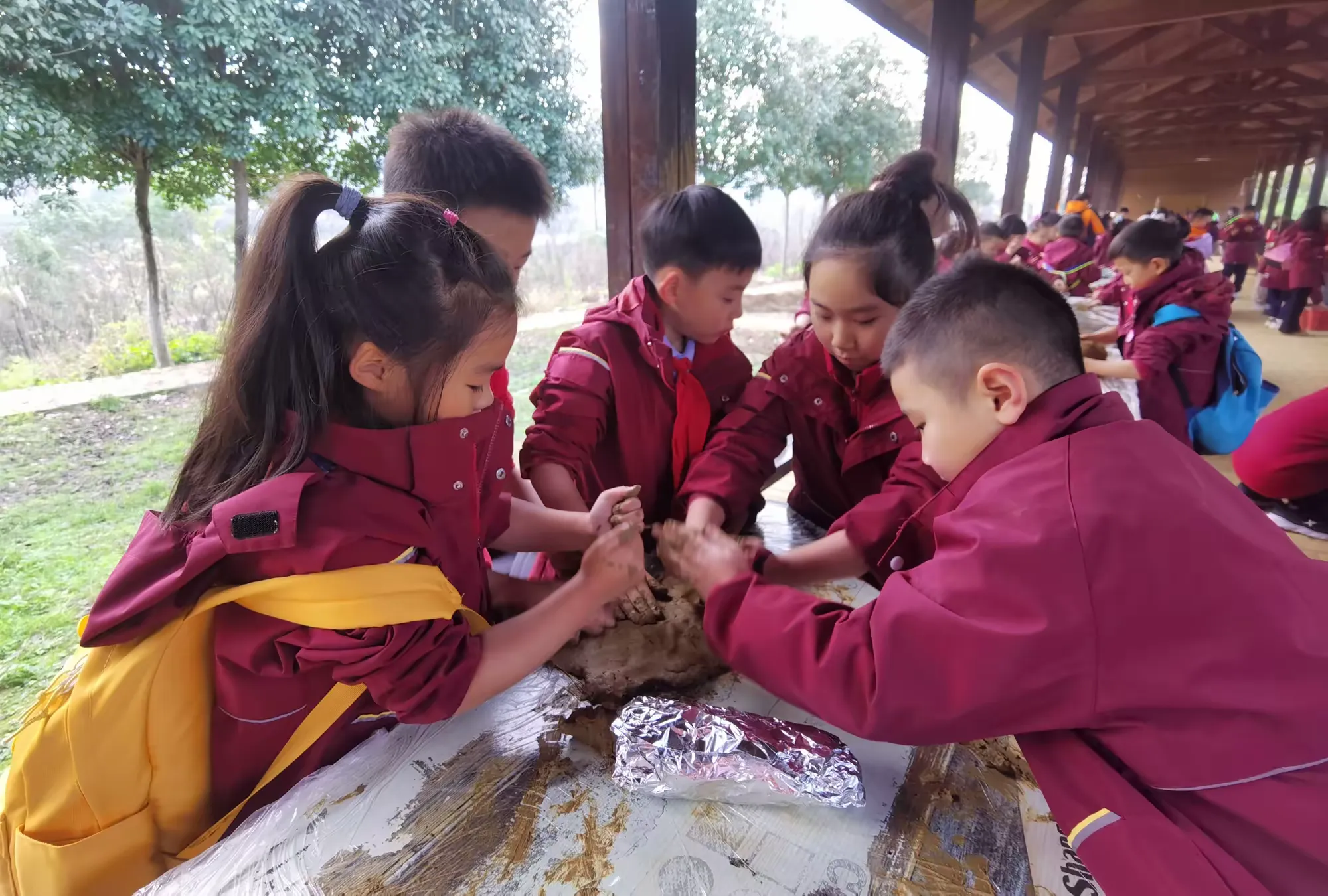 江南名菜“叫花鸡”,酥脆外皮包裹鲜嫩内里,香气四溢,闻名遐迩。此次研学,同学们变身美食小工匠,亲制佳肴。他们轻柔“按摩”鸡肉,细心装填食材,均匀涂抹调料,再用锡箔纸与黄泥层层包裹,宛如打造艺术珍品。