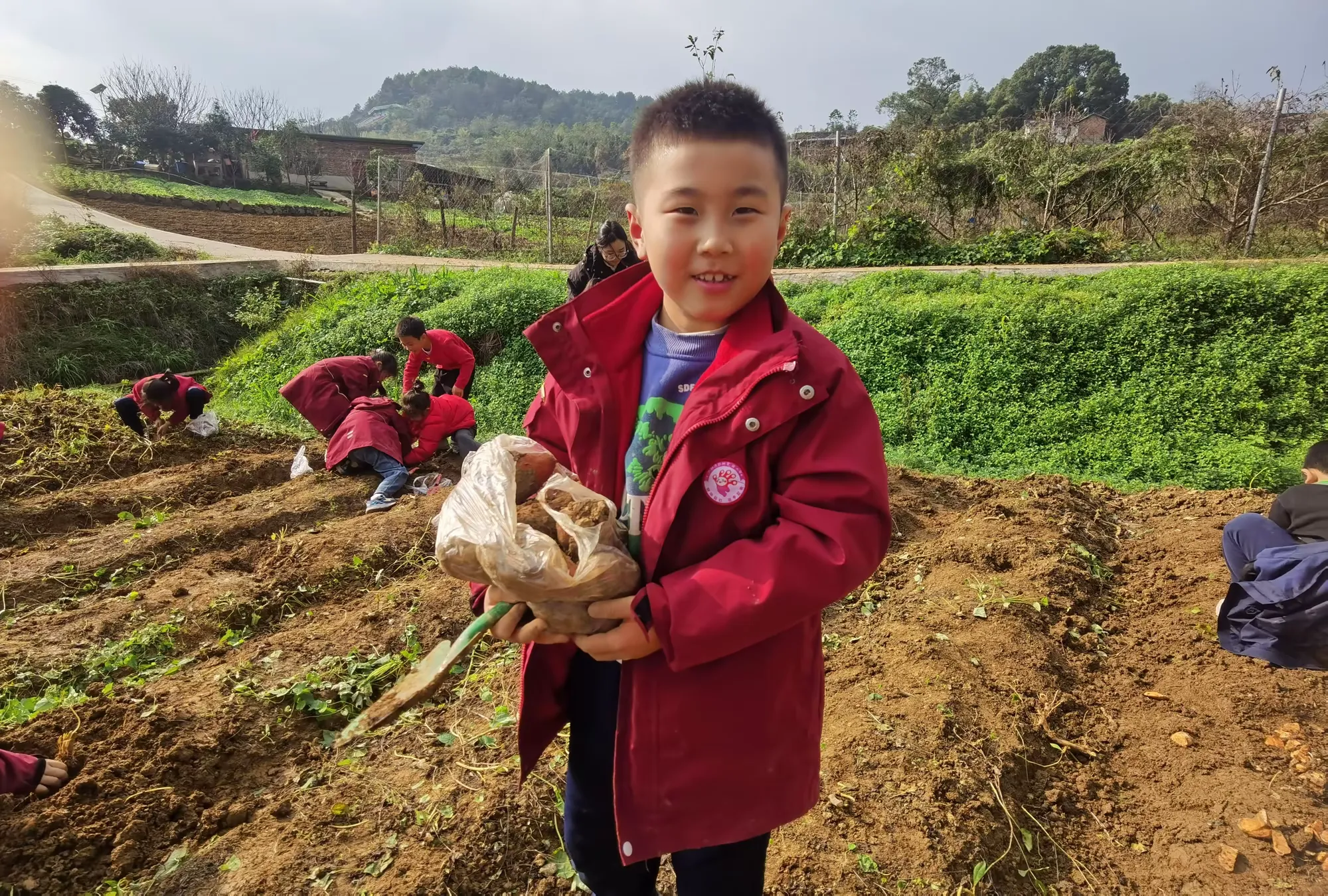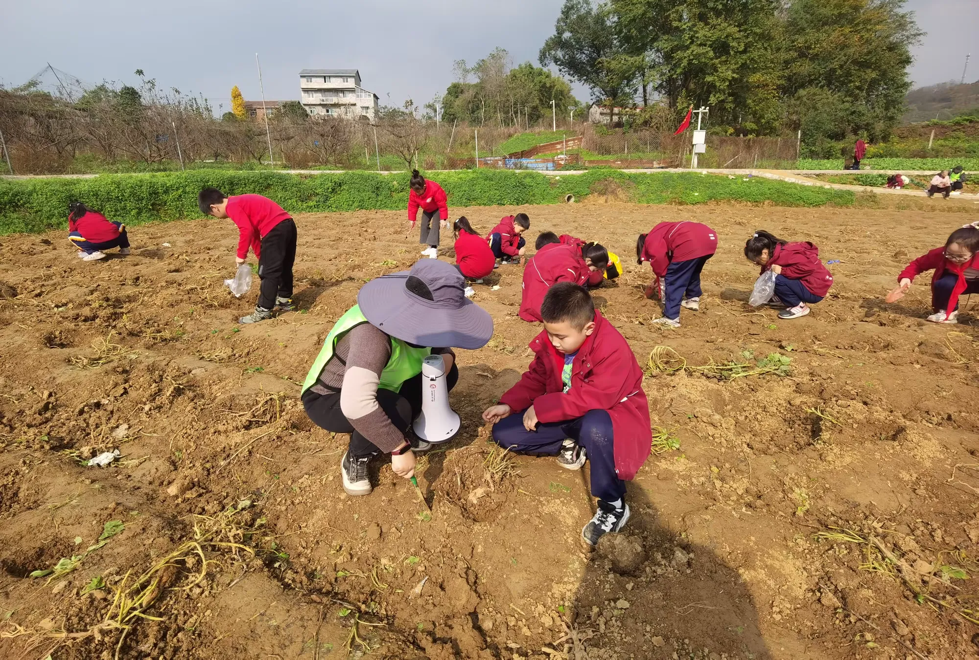躬耕学农事,实践觅真知,为了完善校园农耕教育体系,深挖劳动教育价值,让学生从一方教室走进田园课堂。2024年12月11日,在乐其研学老师带领下,广阳湾珊瑚实验小学二年级同学们走进开心农场,开展了一次寓教于乐的农耕研学之旅。
