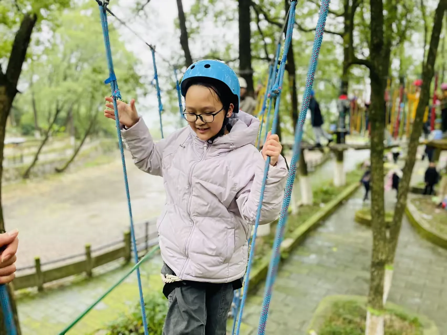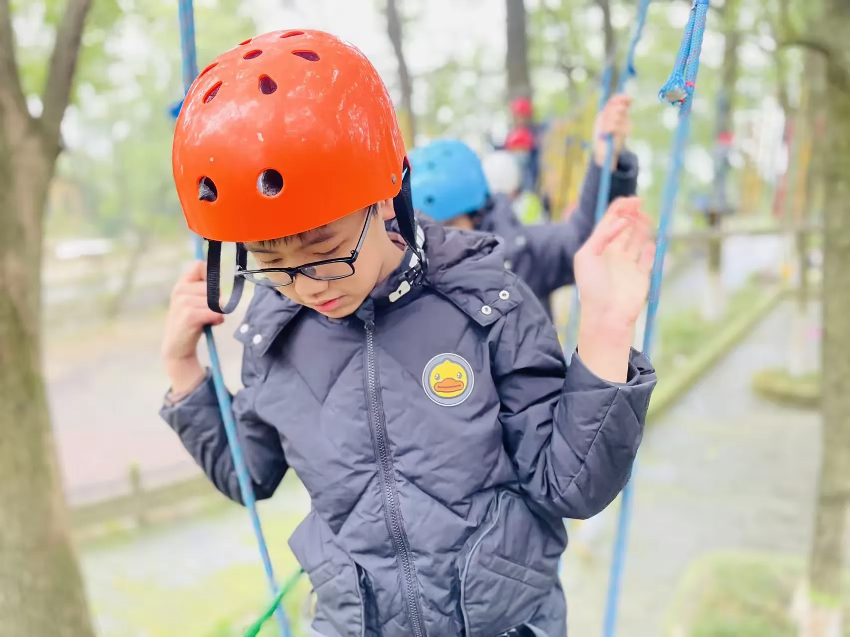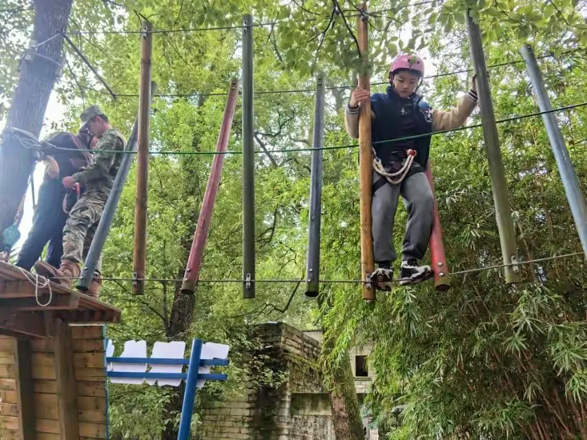一切准备就绪,终于可以去林间挑战自我啦!哪怕是在三、四米左右的高处,大家互相鼓励,克服内心的恐惧,面对镜头时还可以面露笑容。通过这项挑战,同学们的力量、速度、毅力、胆识都得到了充分磨炼。