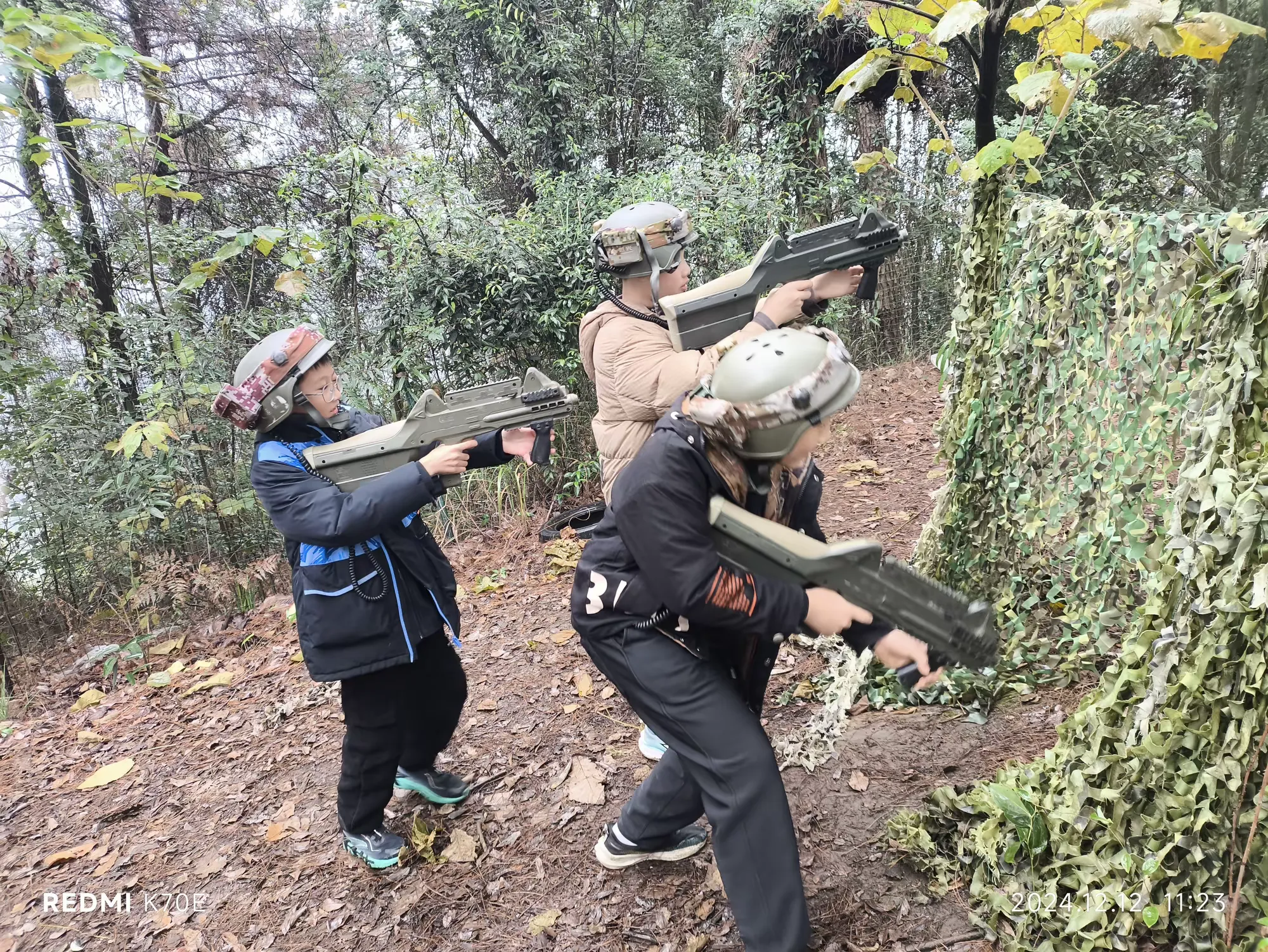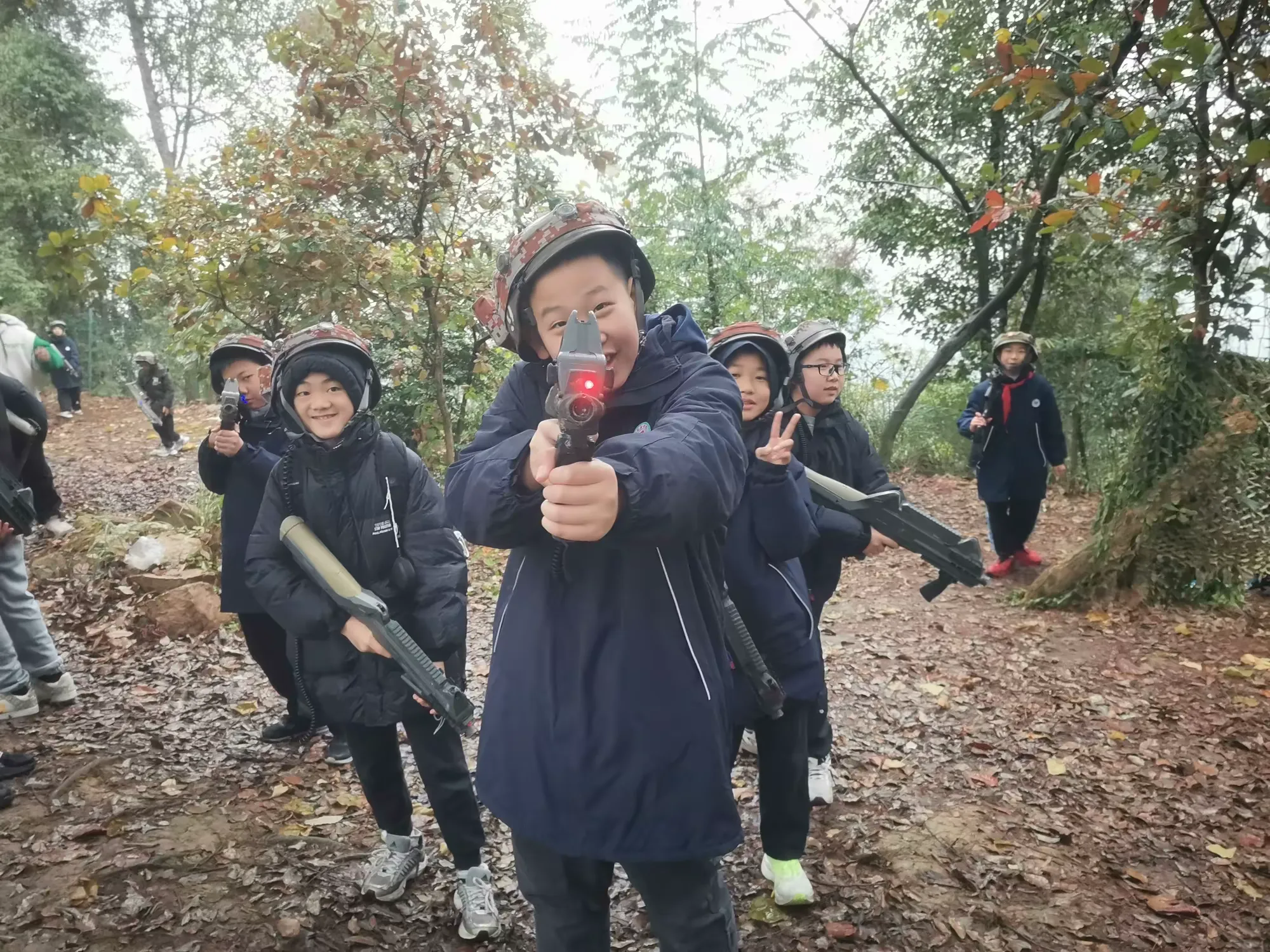 真人CS,让同学们跳出电子世界,亲身体验革命先辈在真实战场的紧张与惊险。穿上装备、背上战枪,同学们摇身一变成为一个个英勇的丛林CS小战士。